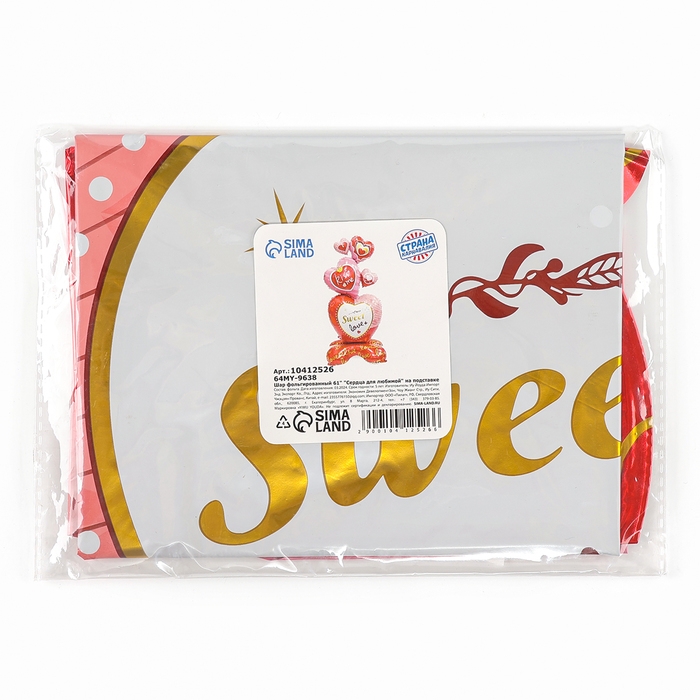 Шар фольгированный 61" «Сердца для любимой», на подставке, под воздух