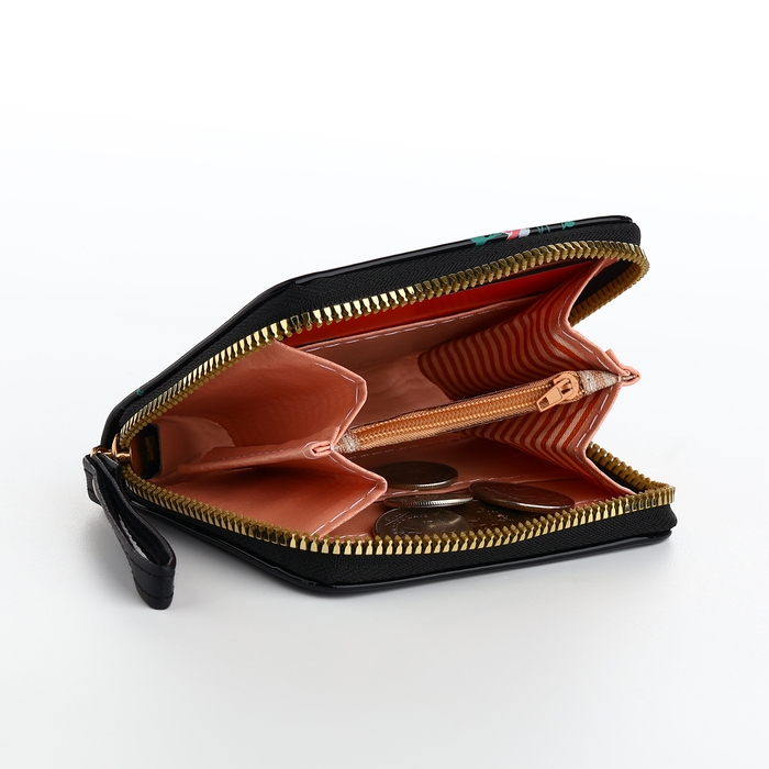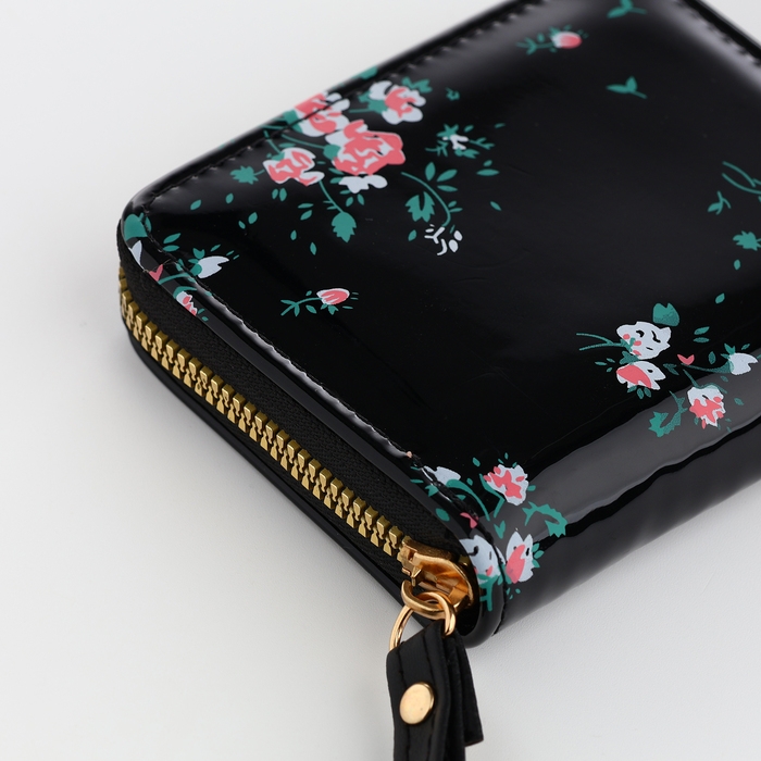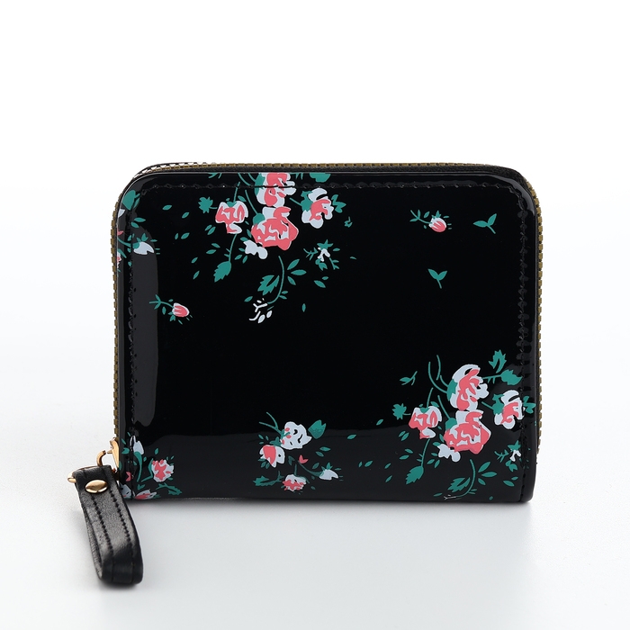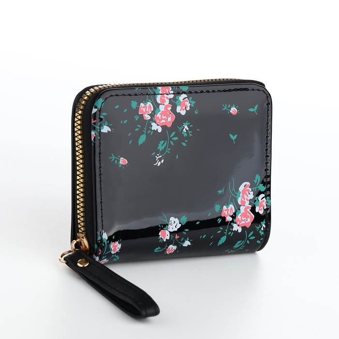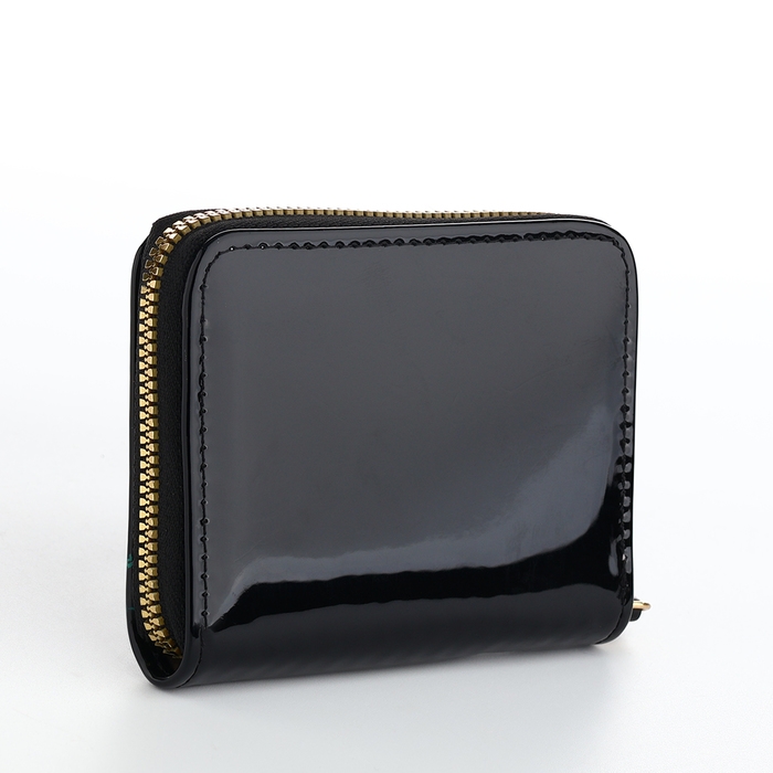 Кошелёк женский на молнии, лакированный, цвет чёрный