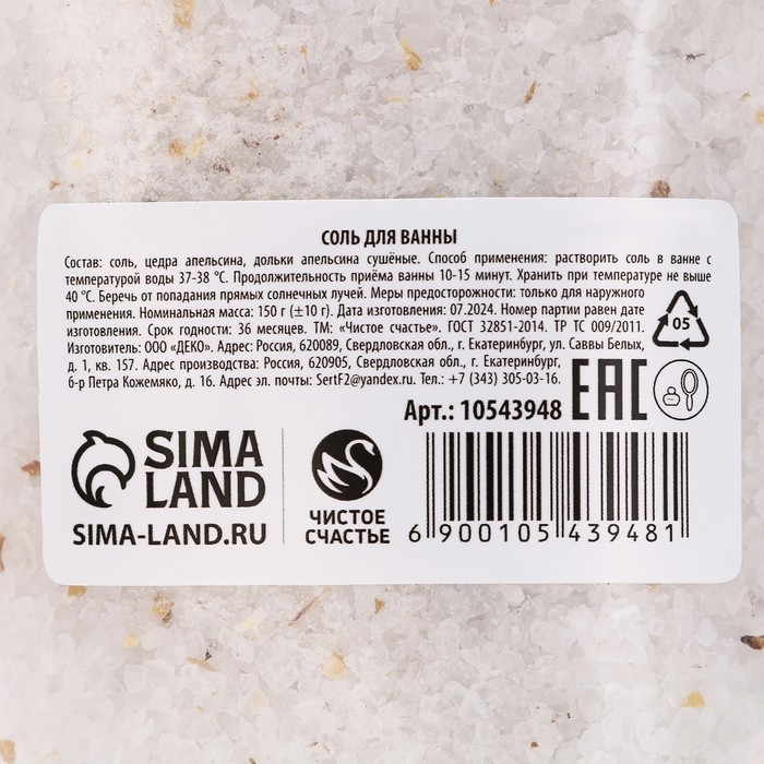 Соль для ванны с добавками, 150 гр, аромат апельсина, Новый Год