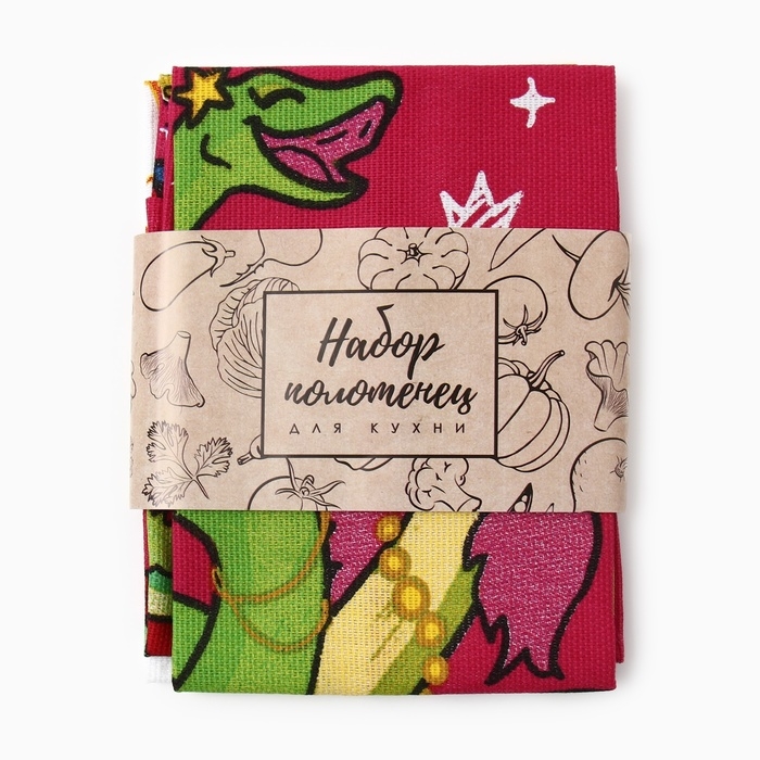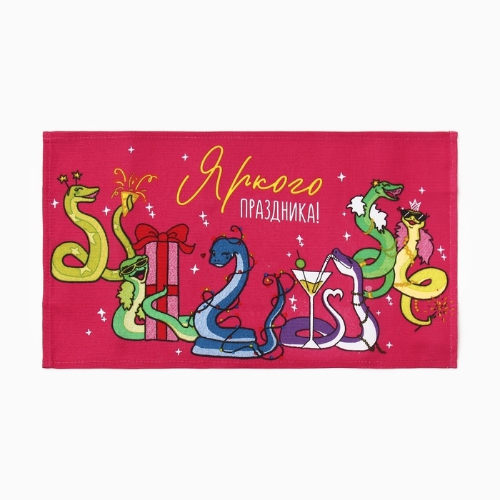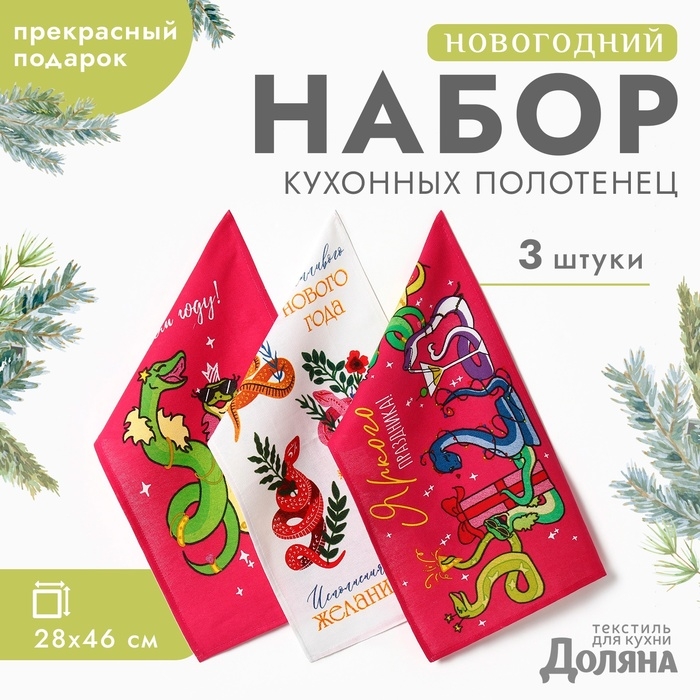 Новый год. Символ года. Змея. Набор полотенец Доляна "Новогодняя вечеринка" 28х46 см - 3 шт, 100% хл, рогожка 164 г/м2