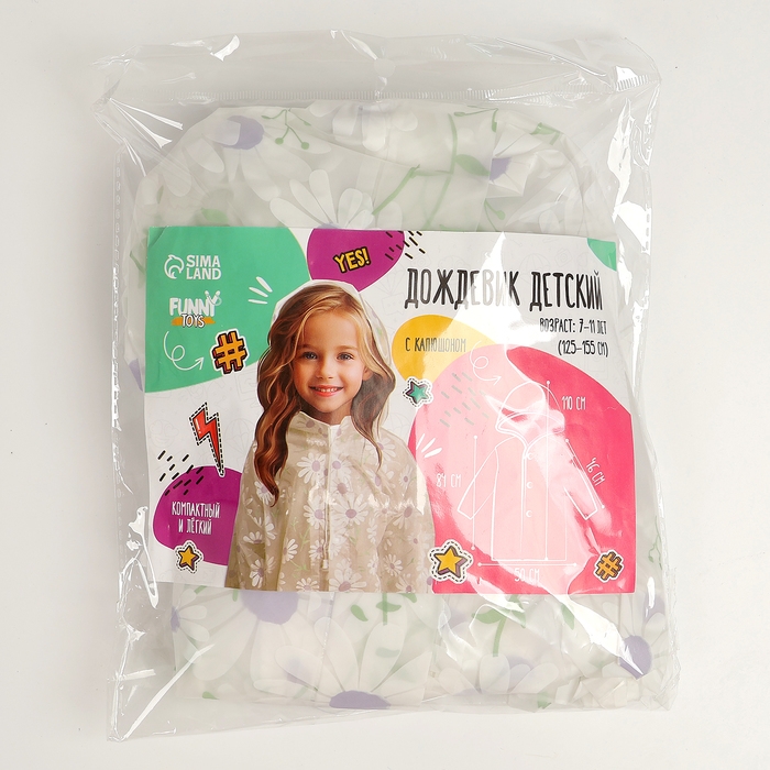 - Размер дождевика рассчитан на детей ростом от 125 до 155 см.