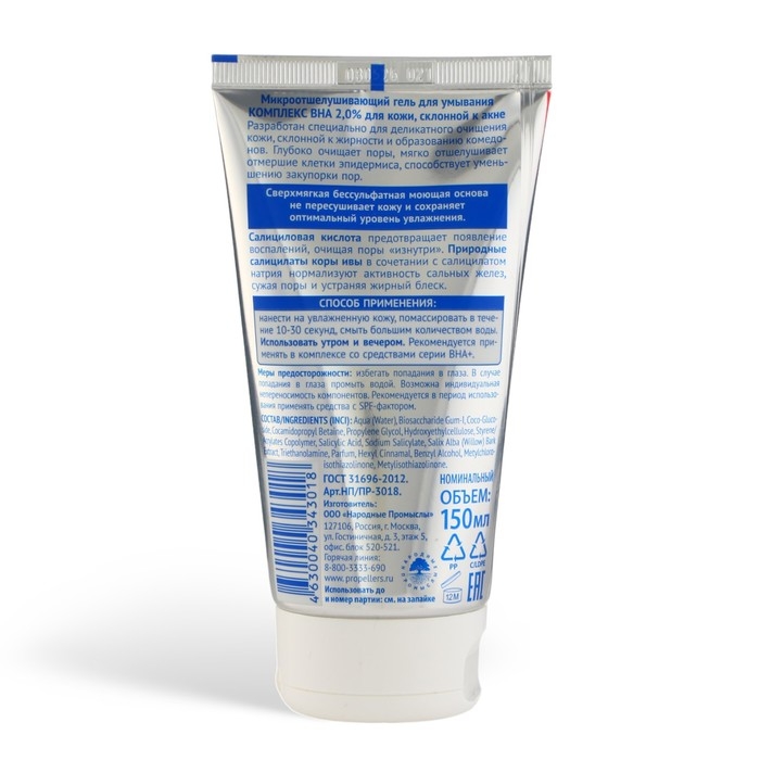 Микроотшелушивающий гель для умывания Пропеллер для кожи склонной к акне ВНА 2,0%, 150 мл