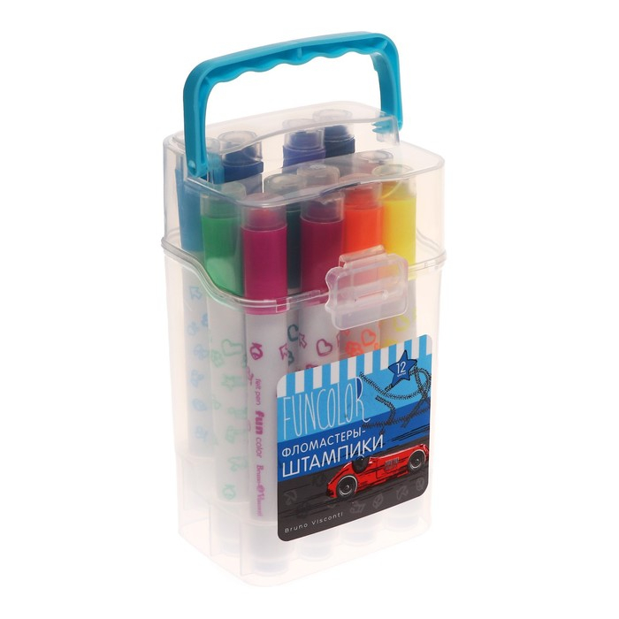 Фломастеры-штампики 12 цветов, Funcolor, в пластиковом пенале, МИКС