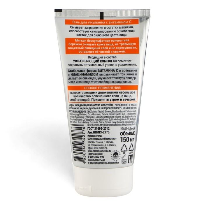 Гель для умывания с витамином С смывает загрязнения и остатки макияжа, способствует стимулированию обновления клеток для сияющего цвета лица. Мягкая бессульфатная основа геля бережно очищает кожу лица, не травмируя защитный липидный слой и не пересушивая, оставляет её чистой и свежей. Входящий в состав увлажняющий комплекс помогает сохранить оптимальный уровень увлажнения. Стабильная форма витамина С в сочетании с ниацинамидом выравнивает тон кожи и делает ее сияющей, улучшает текстуру эпидермиса и защищает от свободных радикалов.