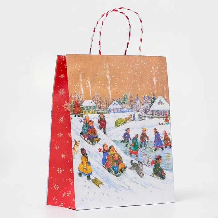 Пакет новогодний подарочный - это яркий и красочный аксессуар, который поможет создать праздничное настроение и сделать подарок еще более запоминающимся.