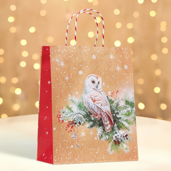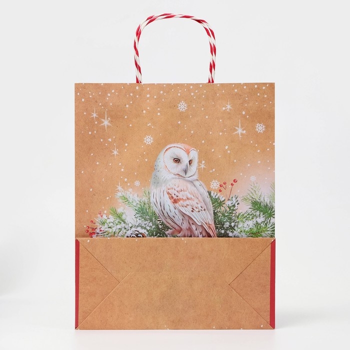 Новый год. Пакет бумажный подарочный новогодний крафт "Совушка" 18 х 22,3 х 10 см.