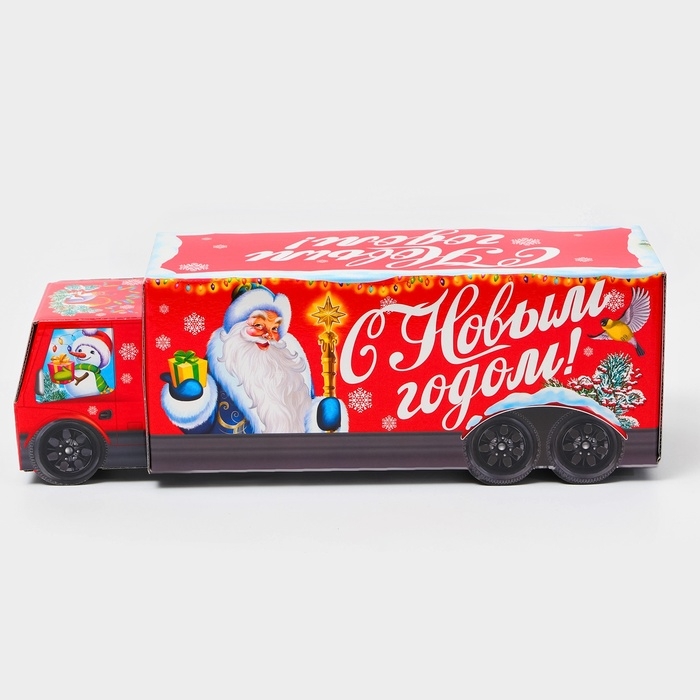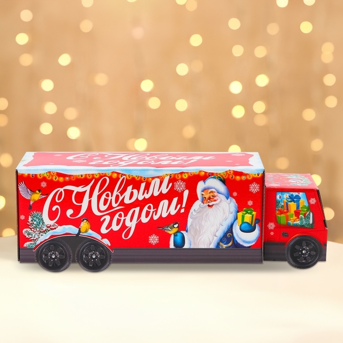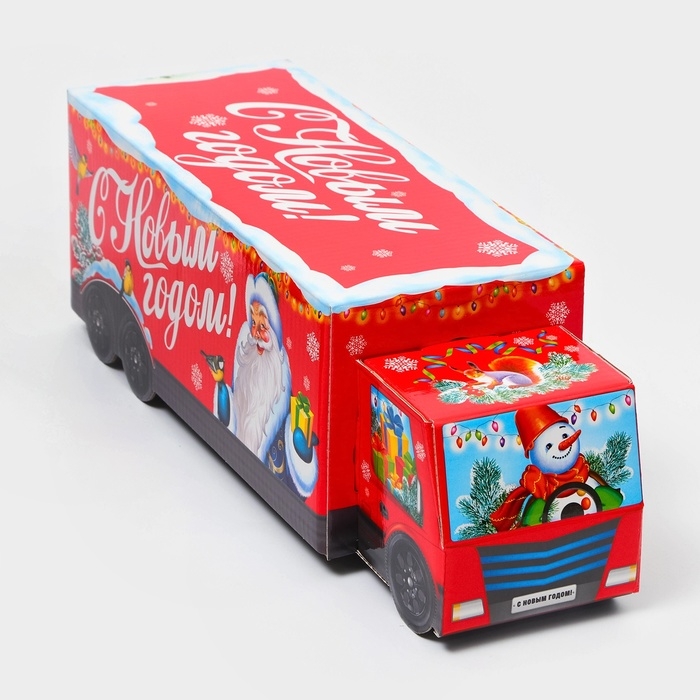 Новый год. Подарочная коробка Новогодняя Фура "Скоро праздник" с анимацией 36 х 11,5 х 11 см.