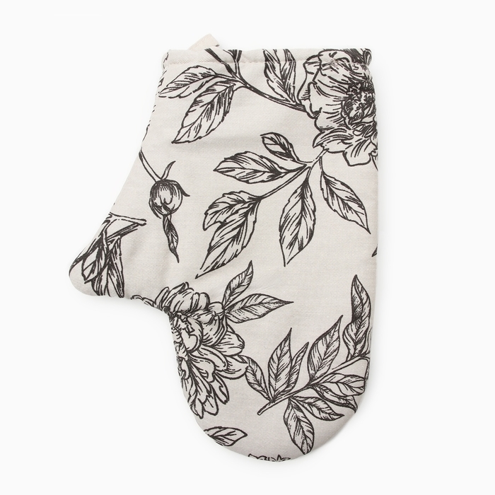 Варежка-прихватка Этель "Black flowers" 20х27см,100% х/л,саржа 190 г/м2