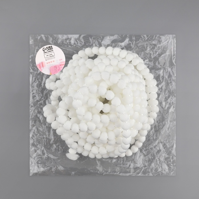 Тесьма декоративная с помпонами, 7 мм, 9,1 ± 0,5 м, цвет белый
