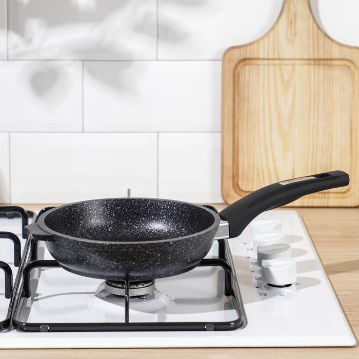 Сковороды серии Granite выполнены из прочного литого алюминия. Посуде не страшна деформация под воздействием высокой температуры, изделие прочное и лёгкое.
