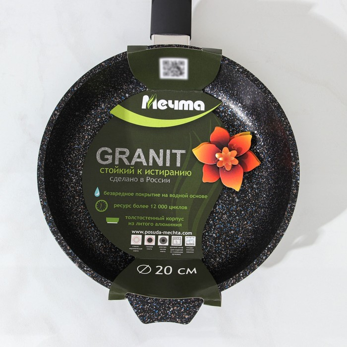 Сковороды серии Granite выполнены из прочного литого алюминия. Посуде не страшна деформация под воздействием высокой температуры, изделие прочное и лёгкое.
