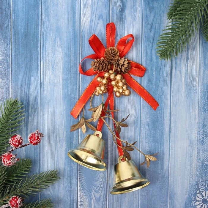 Украшение ёлочное "Новогоднее очарование" колокольчики веточки шишки, 15х7 см