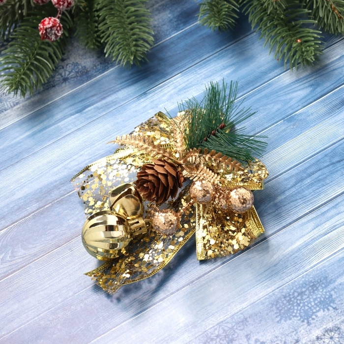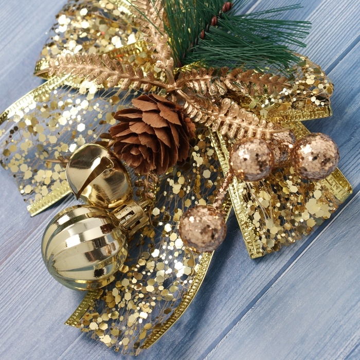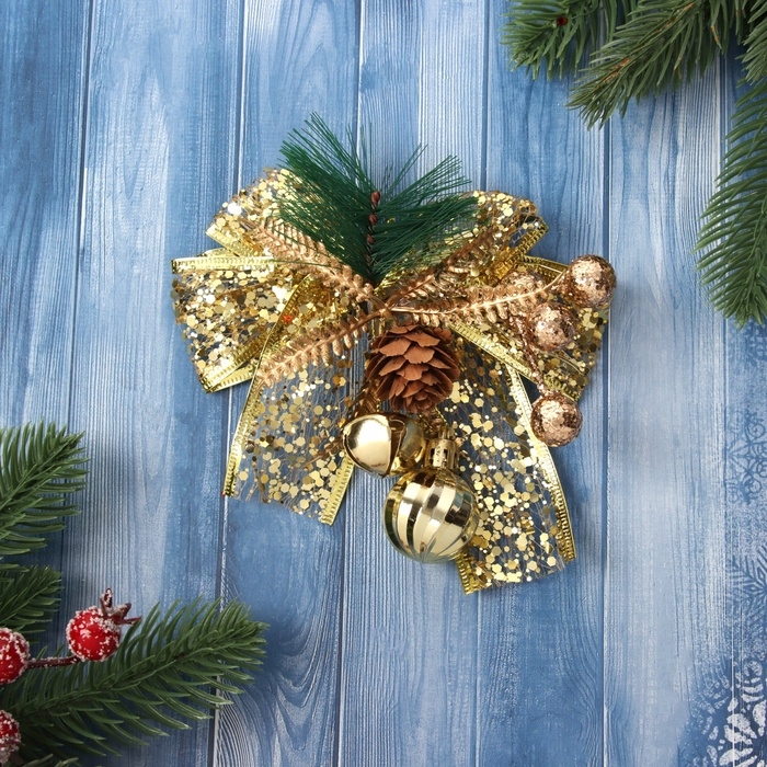 Украшение ёлочное "Новогодний стиль" бант блеск, 13х14 см, золото