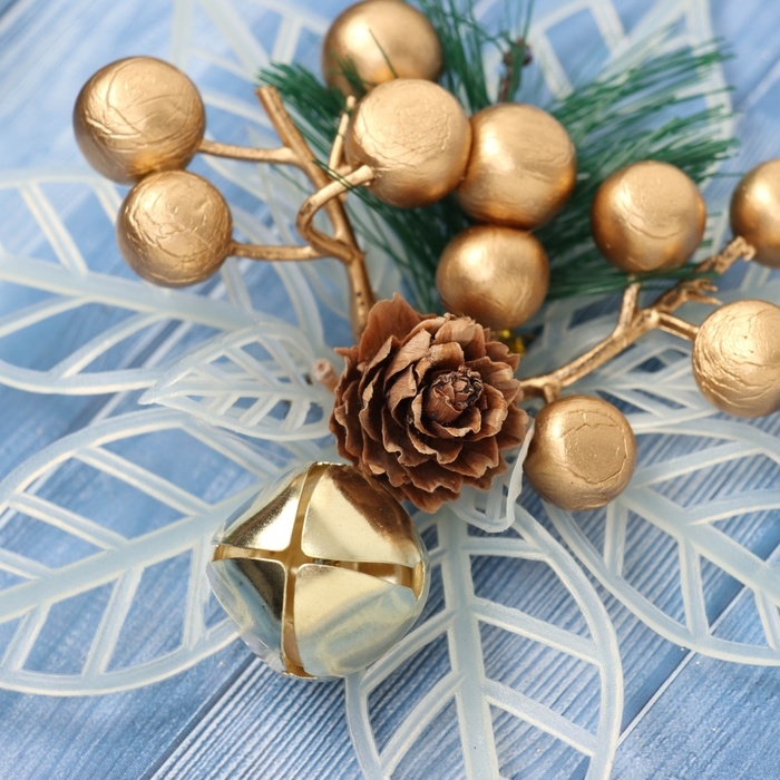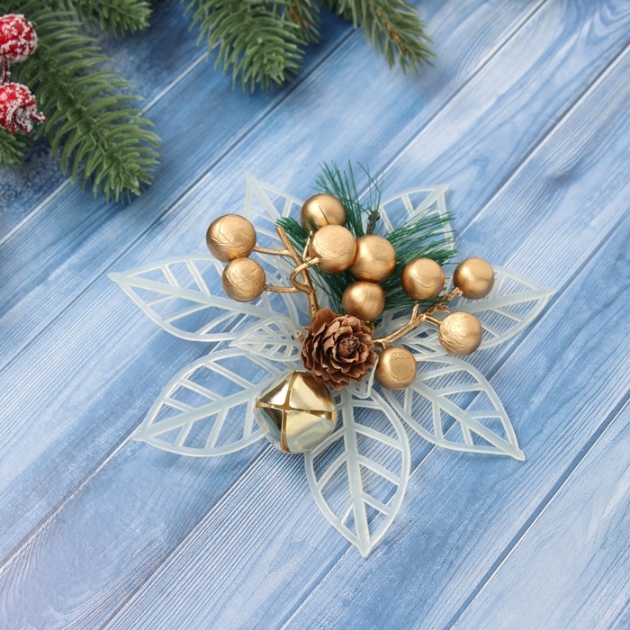Украшение ёлочное "Праздничные цветы" (набор 2 шт) бубенчики, 13 см, белый