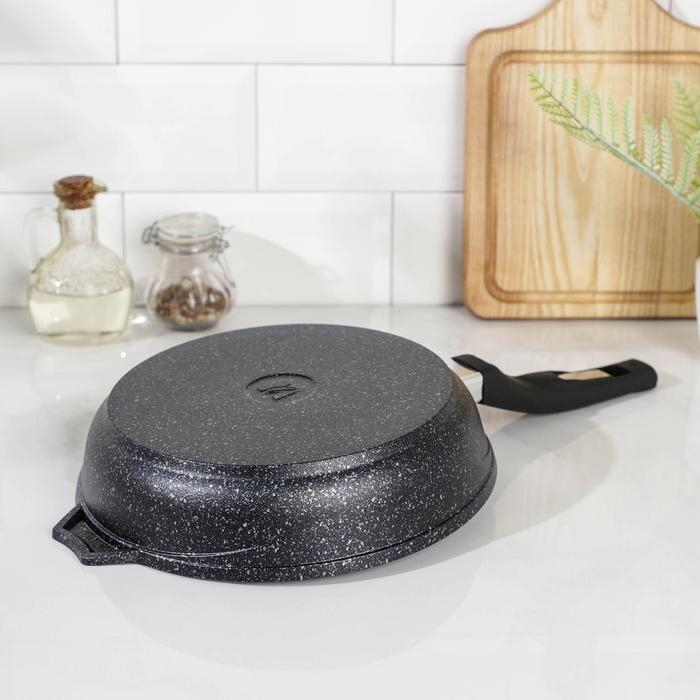 Сковороды серии Granite выполнены из прочного литого алюминия. Посуде не страшна деформация под воздействием высокой температуры, изделие прочное и лёгкое.