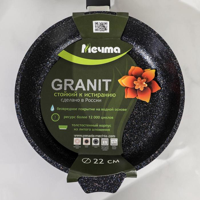 Сковорода «Гранит Star», d=22 см, пластиковая ручка, антипригарное покрытие, тёмно-синий