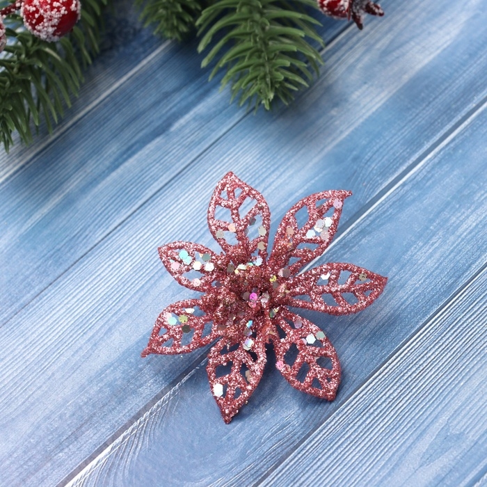 Украшение ёлочное "Блестящие цветки" (набор 6 шт) 6х6 см, микс