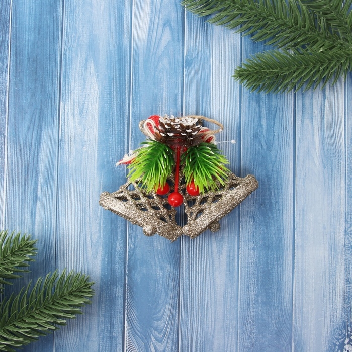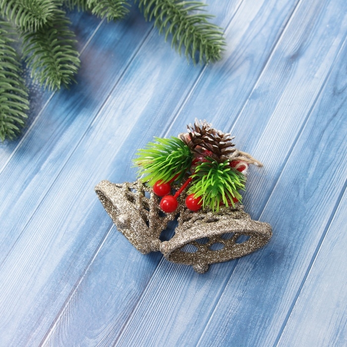 Украшение ёлочное "Колокольчик блеск бантик" 8х10,5 см, золото