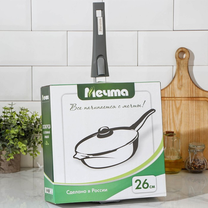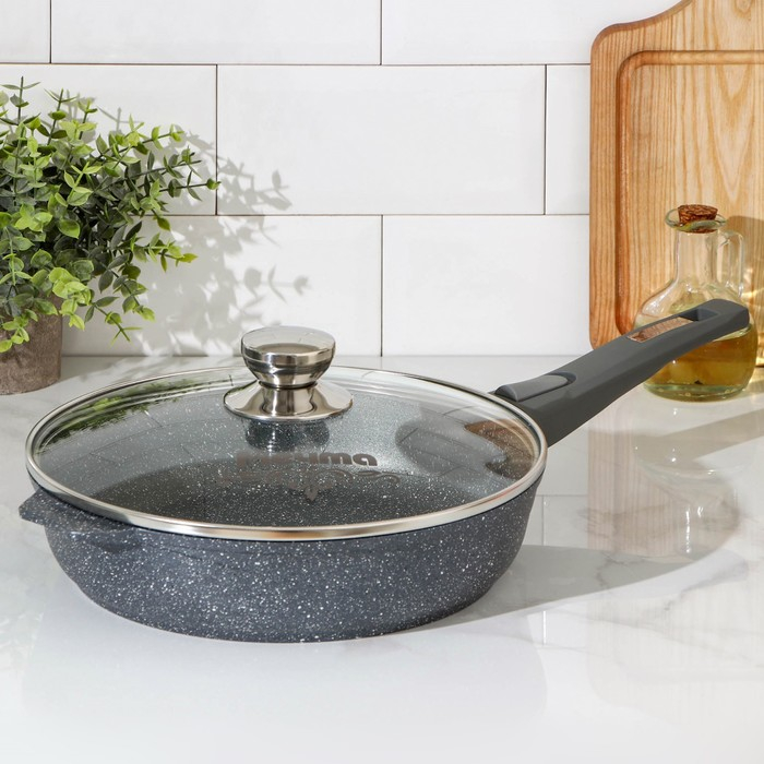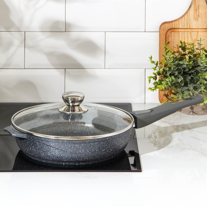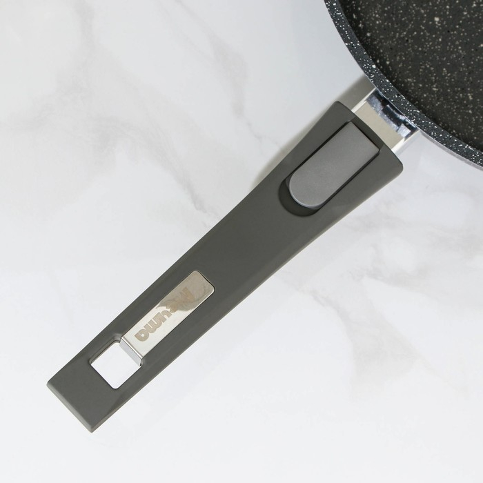 Сковорода «Гранит», d=26 см, антипригарное покрытие, съёмная ручка, стеклянная крышка, цвет серый
