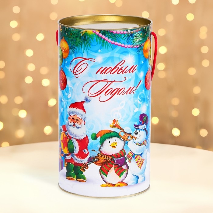 Новый год. Подарочная коробка, тубус «Новогодние музыканты» 120х220мм .