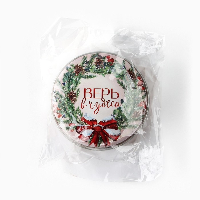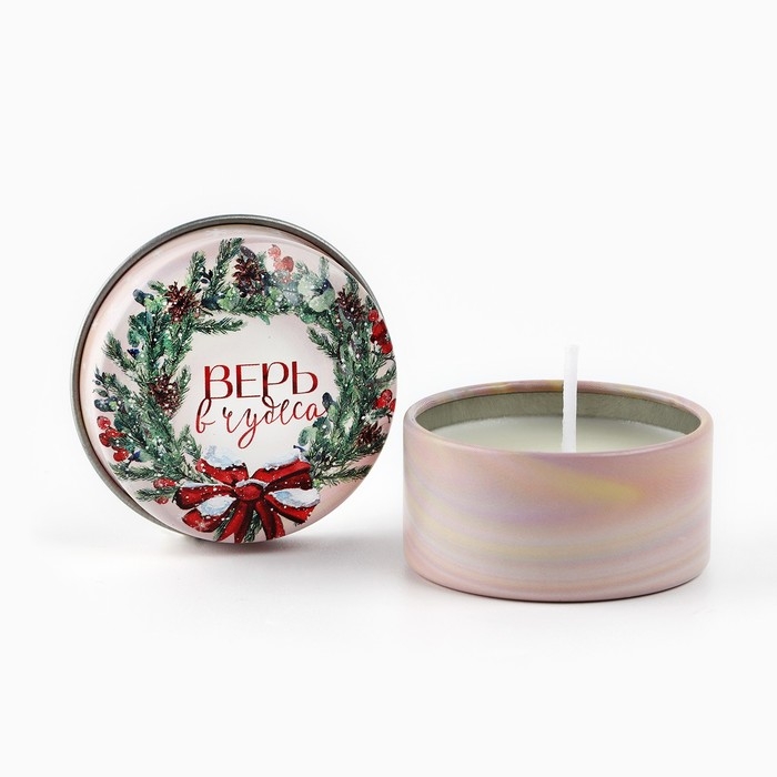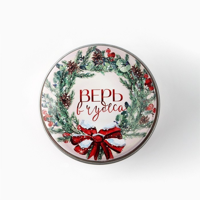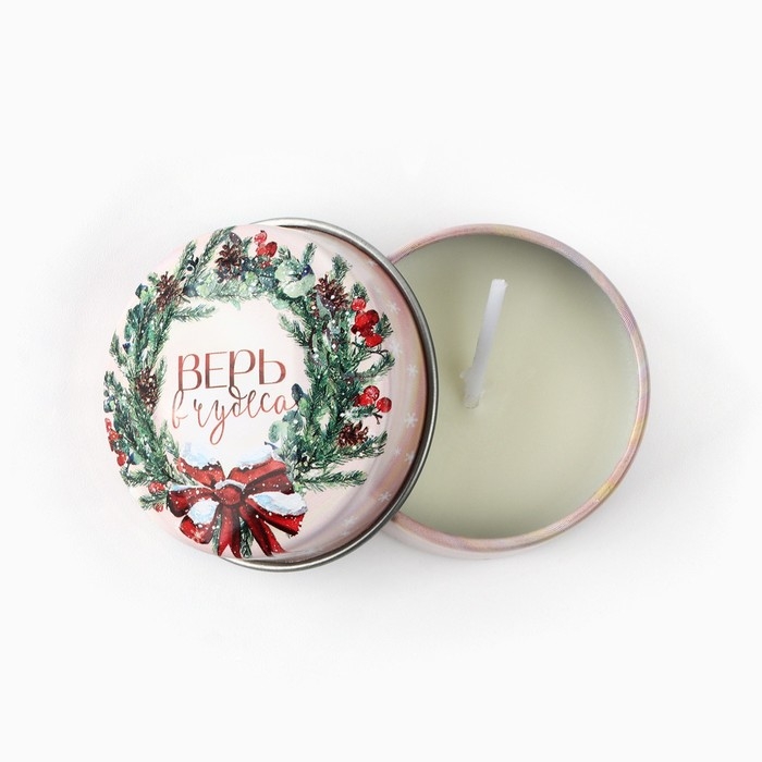 Свеча новогодняя в железной банке «Новый год: Верь в чудеса«Новый год: аромат ягоды, 4.8 см