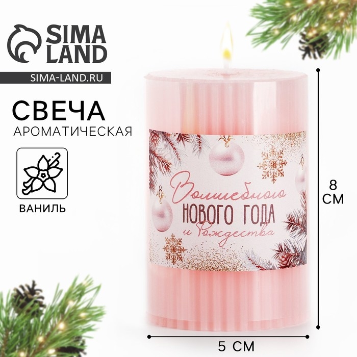 Свеча новогодняя столбик интерьерная «Новый год: Волшебного нового года», аромат ваниль, 7,5 х 5 см