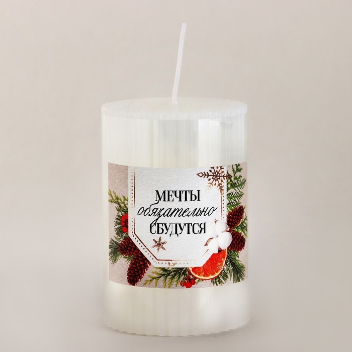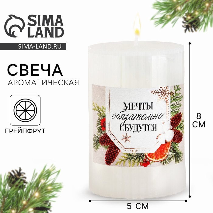 Свеча новогодняя столбик интерьерная «Новый год: Мечты сбудутся», аромат грейпфрут, 7,5 х 5 см