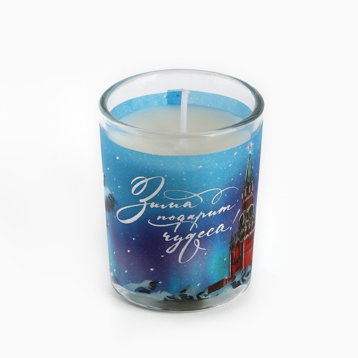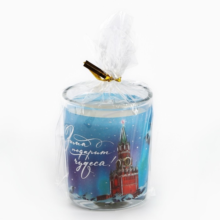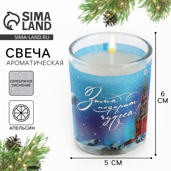 Свеча Свеча новогодняяс калькой «Новый год: Чудеса», аромат апельсин,5х6х5 см