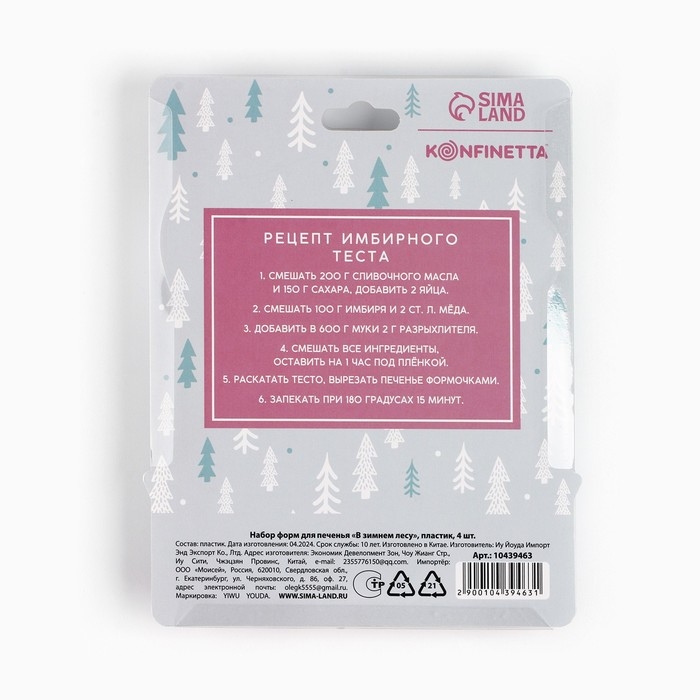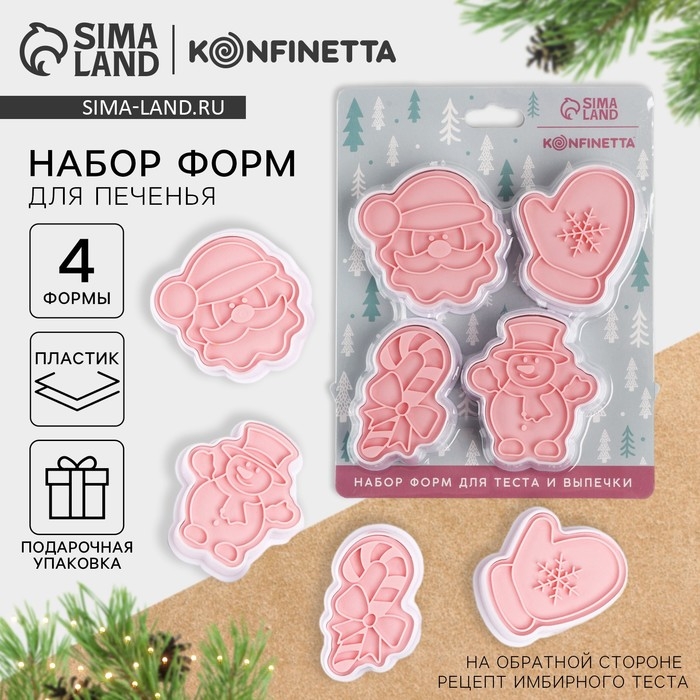 Набор форм для печенья «В зимнем лесу» состоит из четырёх пластиковых формочек, которые помогут создать красивые и оригинальные печенья.