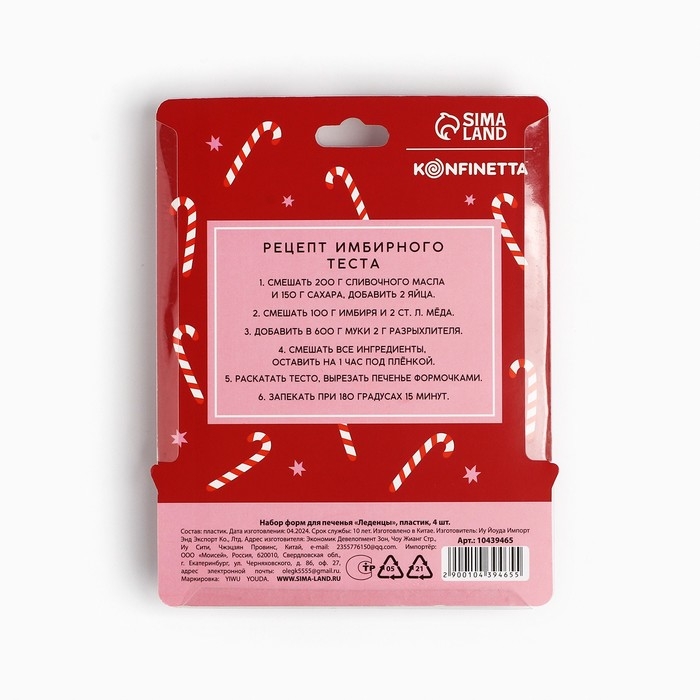 Новый год. Набор форм для печенья «Леденцы», пластик, 4 шт