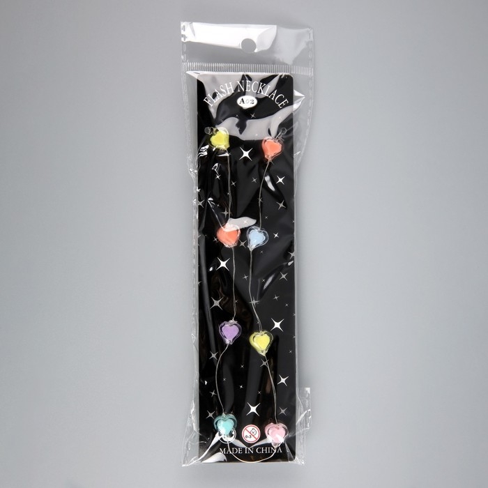 Светодиодные бусы "Сердечки", 80 см, LED(1608)-16-4.6V, AG13x3 (в компл.), 3 режима, свечение тёплое белое