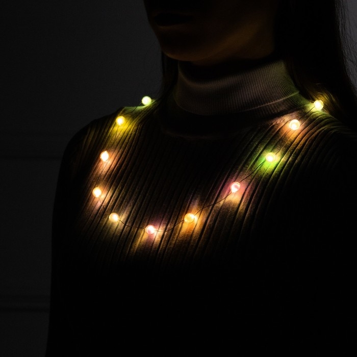 Светодиодные бусы "Бусинки", 80 см, LED(1608)-16-4.6V, AG13x3 (в компл.), 3 режима, свечение тёплое белое