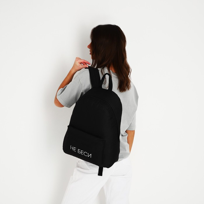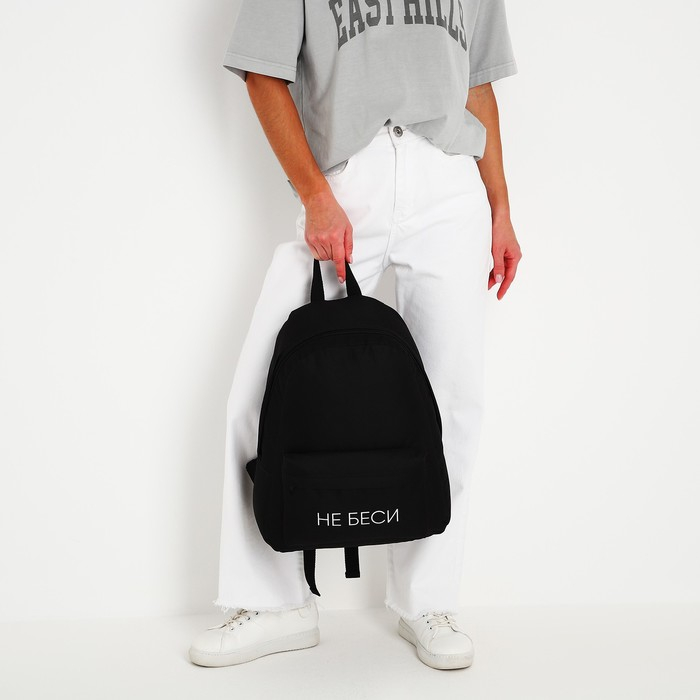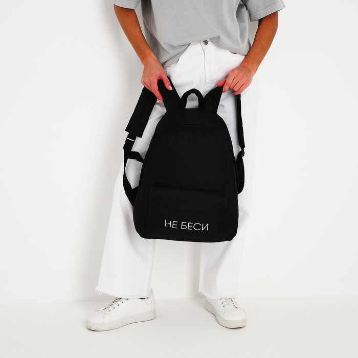 Рюкзак школьный молодёжный «Не беси», 29х12х37 см, отдел на молнии, наружный карман, цвет чёрный
