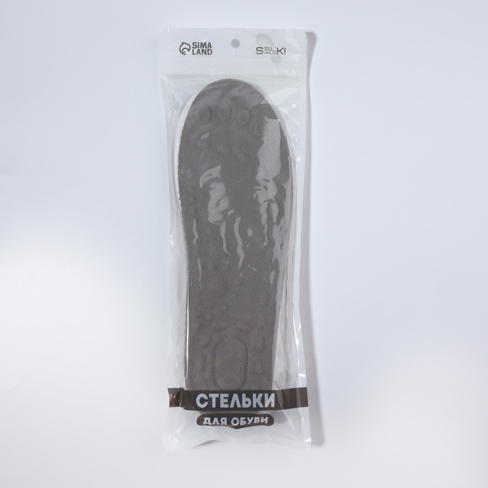 Стельки для обуви, универсальные, дышащие, р-р RU до 45 (р-р Пр-ля до 47), 28,5 см, пара, цвет серый