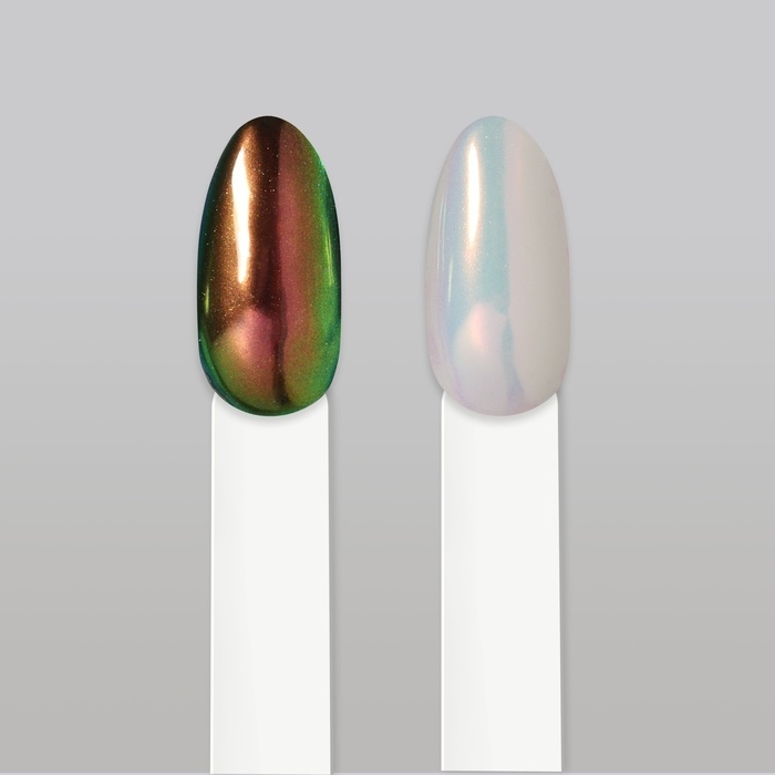 - Эффект зеркального блеска придаёт ногтям уникальный хромированный цвет, который идеально отражает свет.