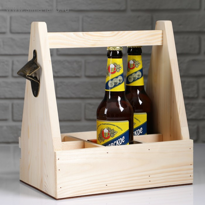 Ящик для пива 27×18×30 см с открывашкой, под 6 бутылок, деревянный