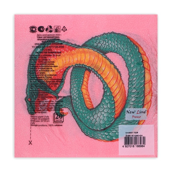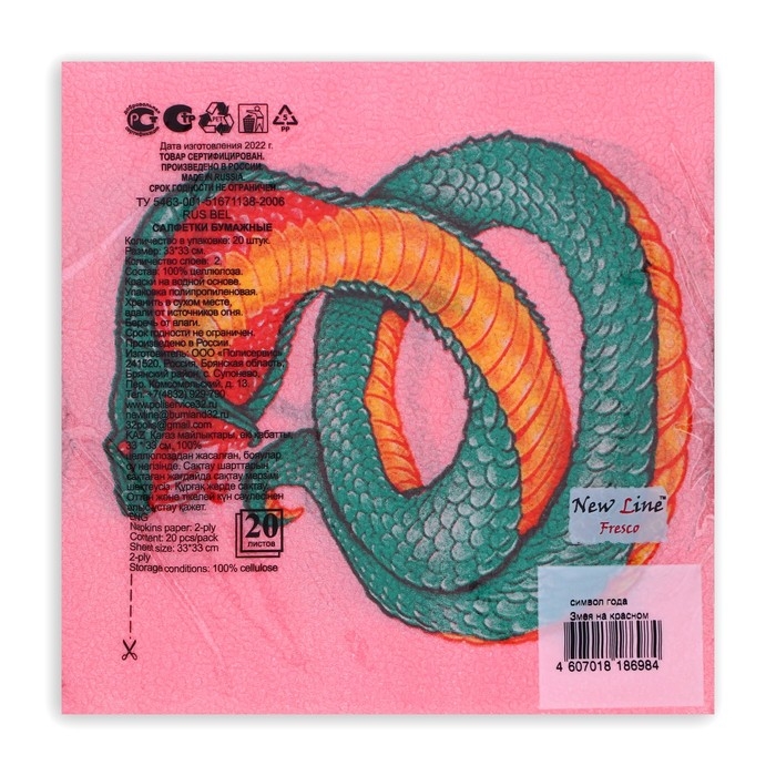 Новогодние салфетки бумажные New Line Fresco «Змея на красном» 2 слоя, 33х33 см, 20 шт