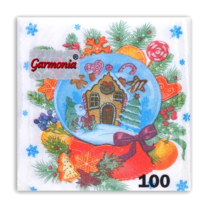 Новогодние салфетки бумажные Гармония цвета «Снежный шар» 1 слой, 24х24 см, 100 шт