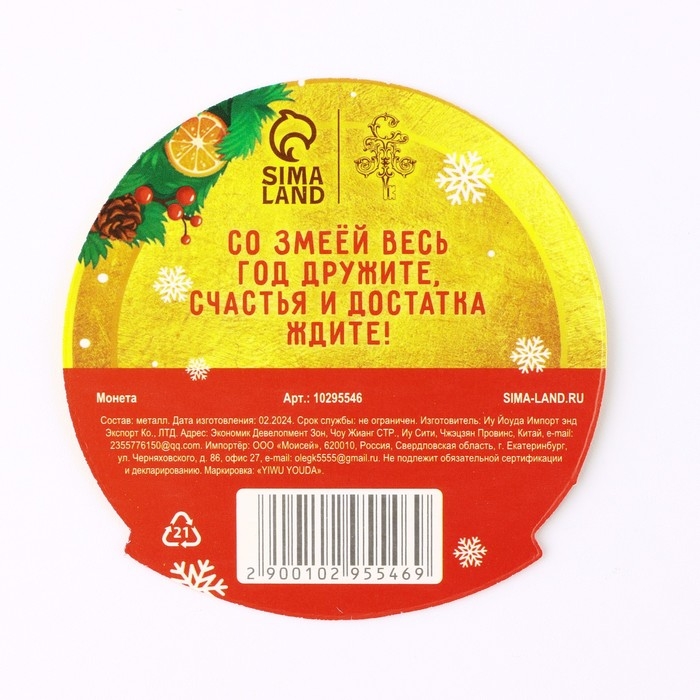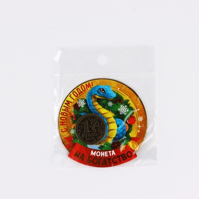 Монета новогодняя амулет «Новый год: С новым годом», диам 2.5 см