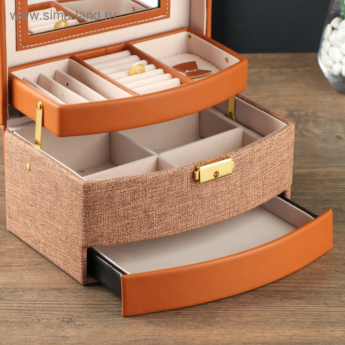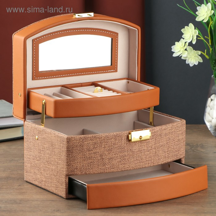 Шкатулка кожзам для украшений сундучок "Шоколад" комбинированная 13х15х21,5 см