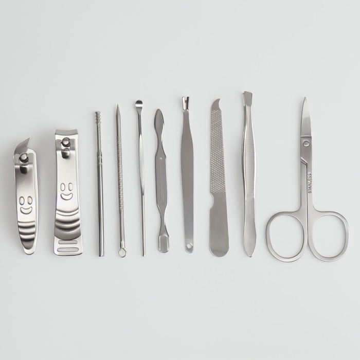 Набор маникюрный «Люси», 10 предметов, кожзам-чехол, цвет серый