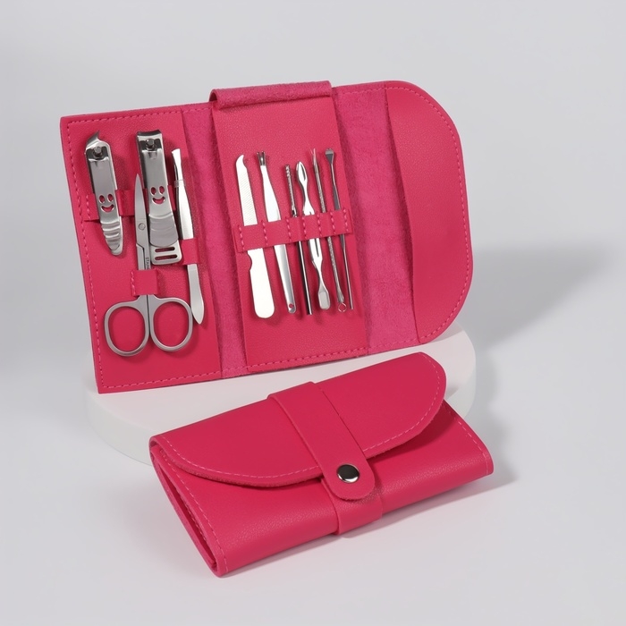 Набор маникюрный «Люси», 10 предметов, кожзам-чехол, цвет фуксия