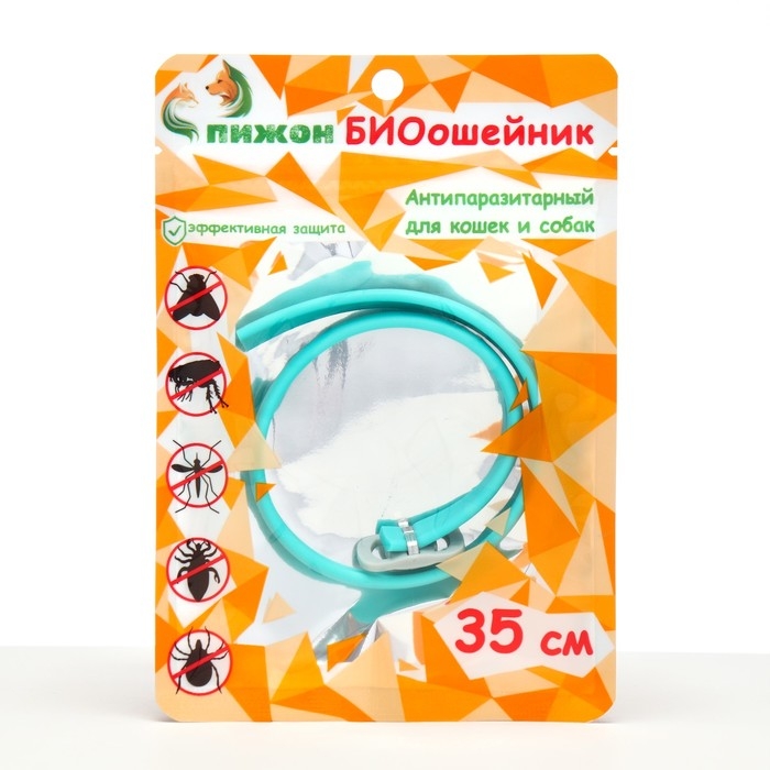 Биоошейник "ПИЖОН" для кошек и маленьких собак, от блох и клещей, мятный 35 см
