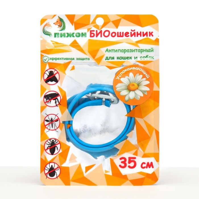 Биоошейник от паразитов "ПИЖОН" для кошек от блох и клещей, синий, 35 см