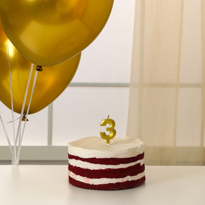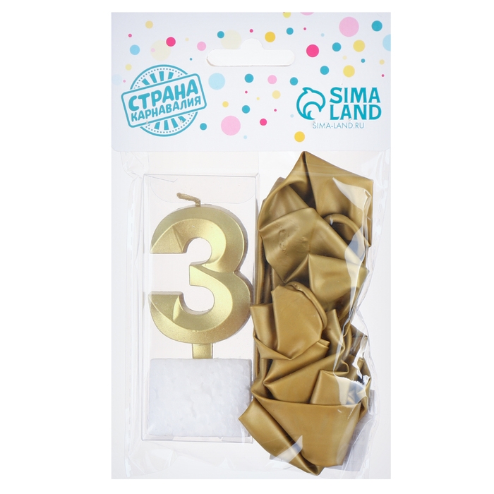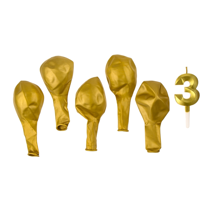 Свечи для торта + 5 шаров, цифра 3, золото