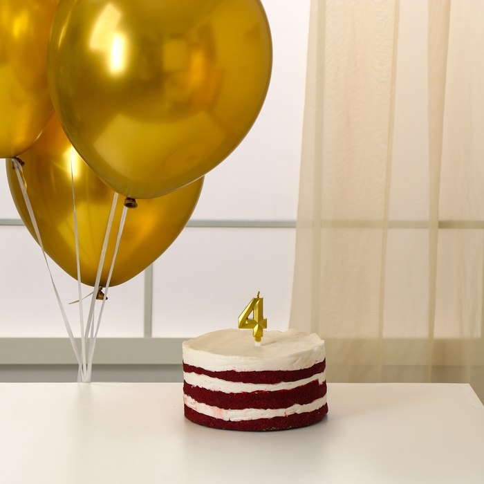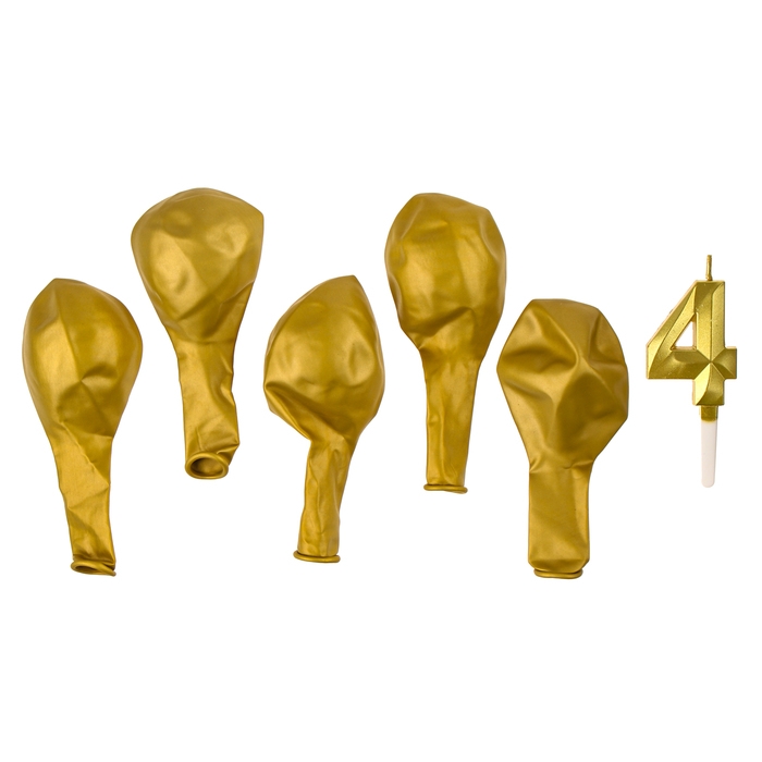 Свечи для торта + 5 шаров, цифра 4, золото