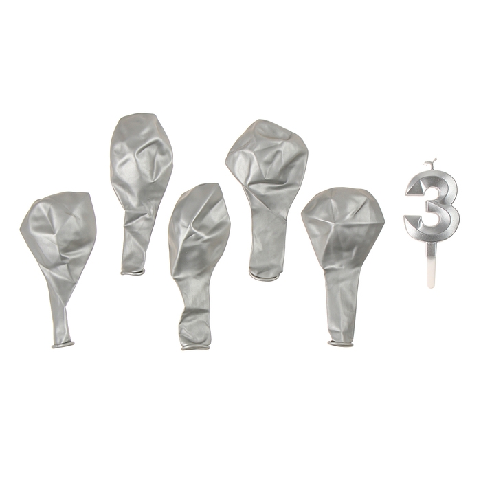 Свечи для торта + 5 шаров, цифра 3, серебро
