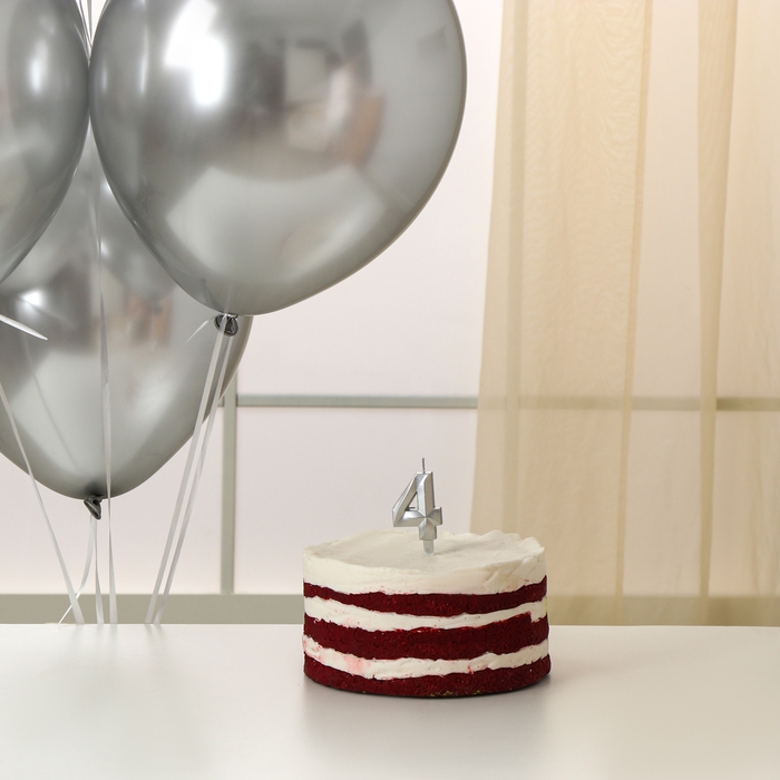 Свечи для торта + 5 шаров, цифра 4, серебро