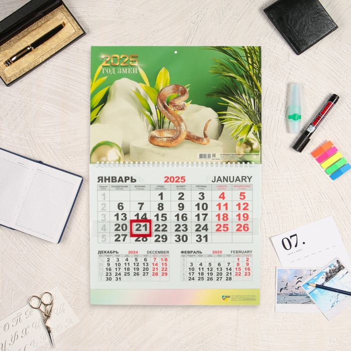 Календарь квартальный моно "Символ года - 1" 2025 год, 30 х 46 см