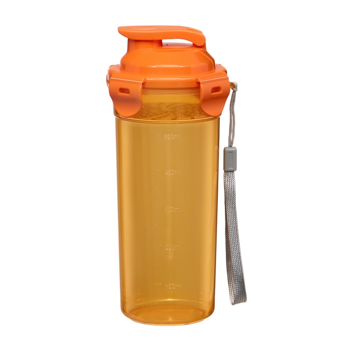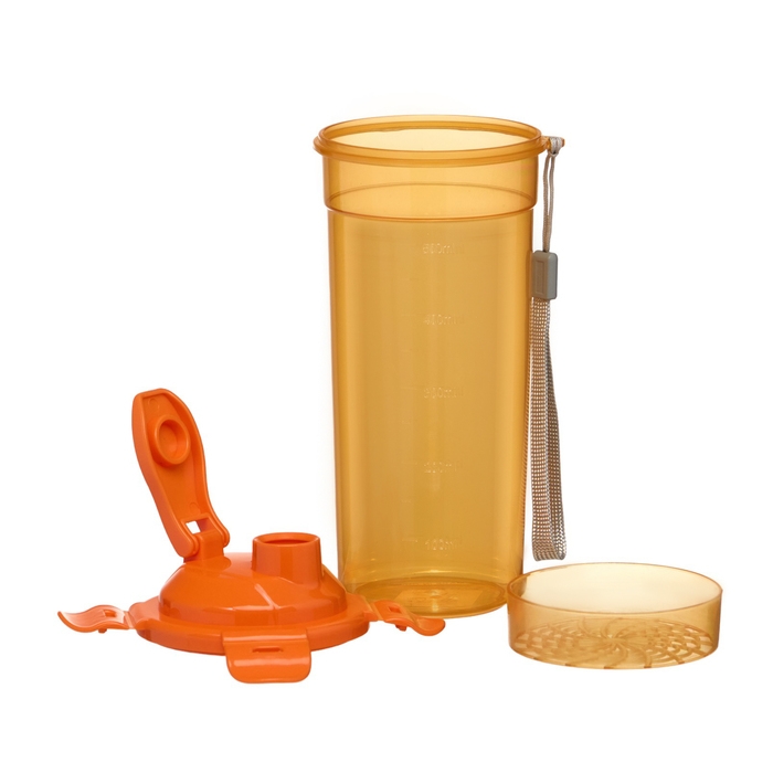 Шейкер спортивный для воды и спортивного питания, 500 мл, с ситом, 21 х 8.5 см, оранжевый